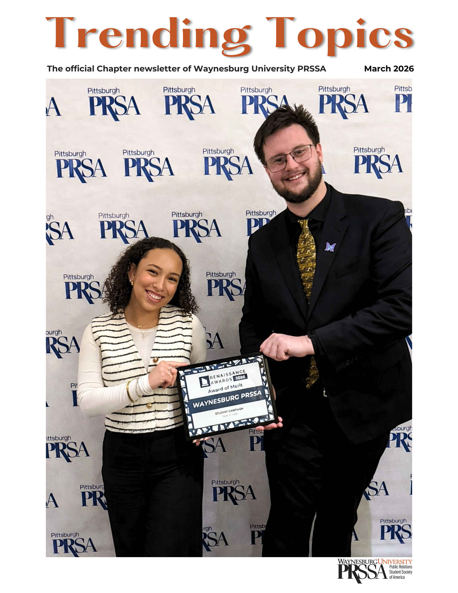 Waynesburg University PRSSA's monthly newsletter, Trending Topics, was awarded the Dr. F.H. Teahan Outstanding Chapter Newsletter Award in November 2015. Below are the archived publications, beginning with the most recent.